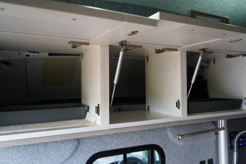 Includes a well-appointed kitchen and enclosed toilet cubicle with Thetford Flushing Cassette Lavatory