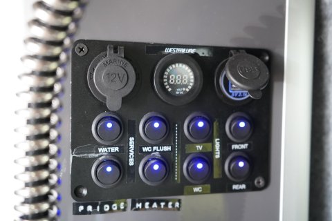 Batteries charge via solar, engine while driving, or mains hookup