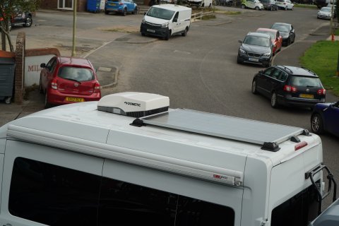 Large roof-mounted solar panel + three leisure batteries